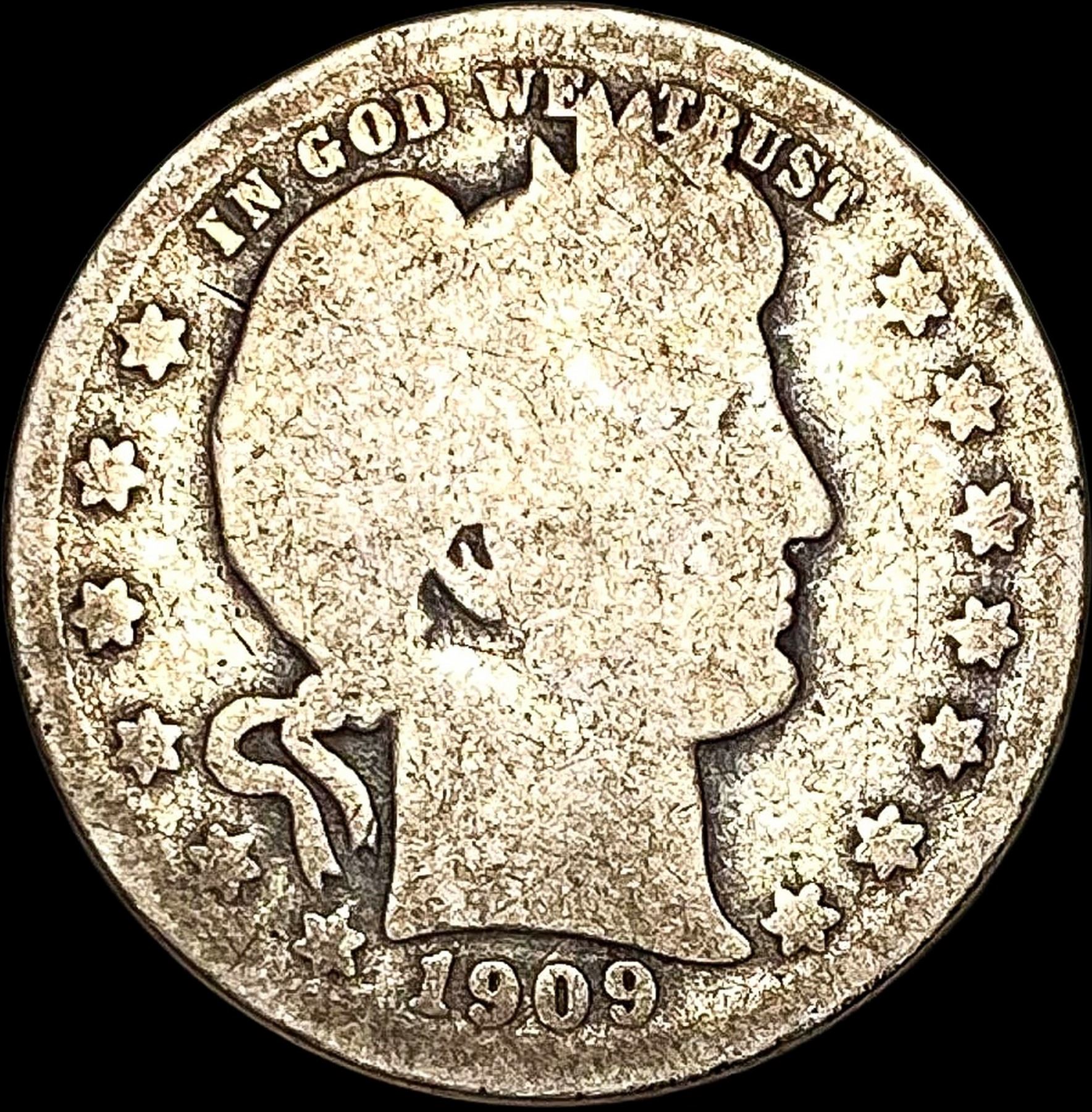 1909-O Silver Barber Quarter NICELY CIRCULATED
