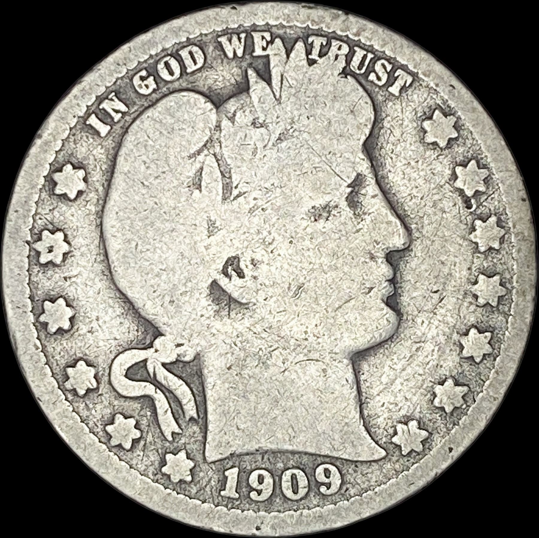 1909-O Silver Barber Quarter NICELY CIRCULATED