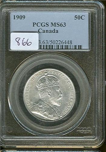 1909 PCGS MS63. Blast white with full lustre! A very attractive example with flashy lustre.