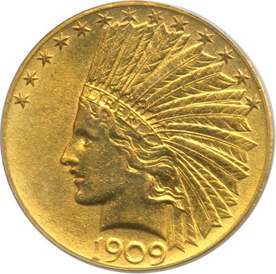 1909 PCGS graded Genuine. Our grade is AU-58 cleaned. Both sides exhibit lovely golden-orange tones (PCGS # 8862) .