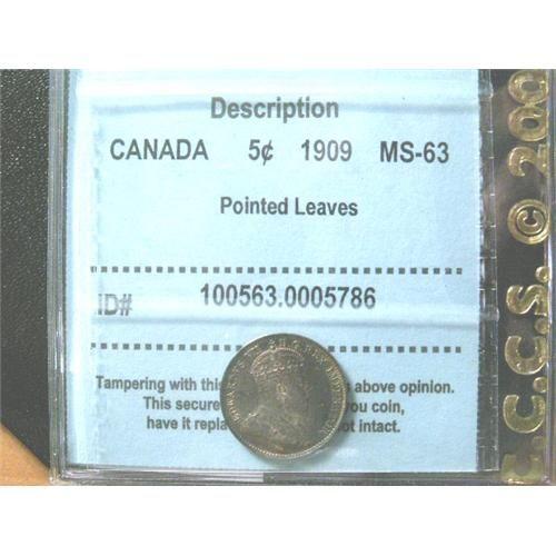 1909 Pointed Leaves 5¢ CCCS MS63. Medium toning. Scarce variety!