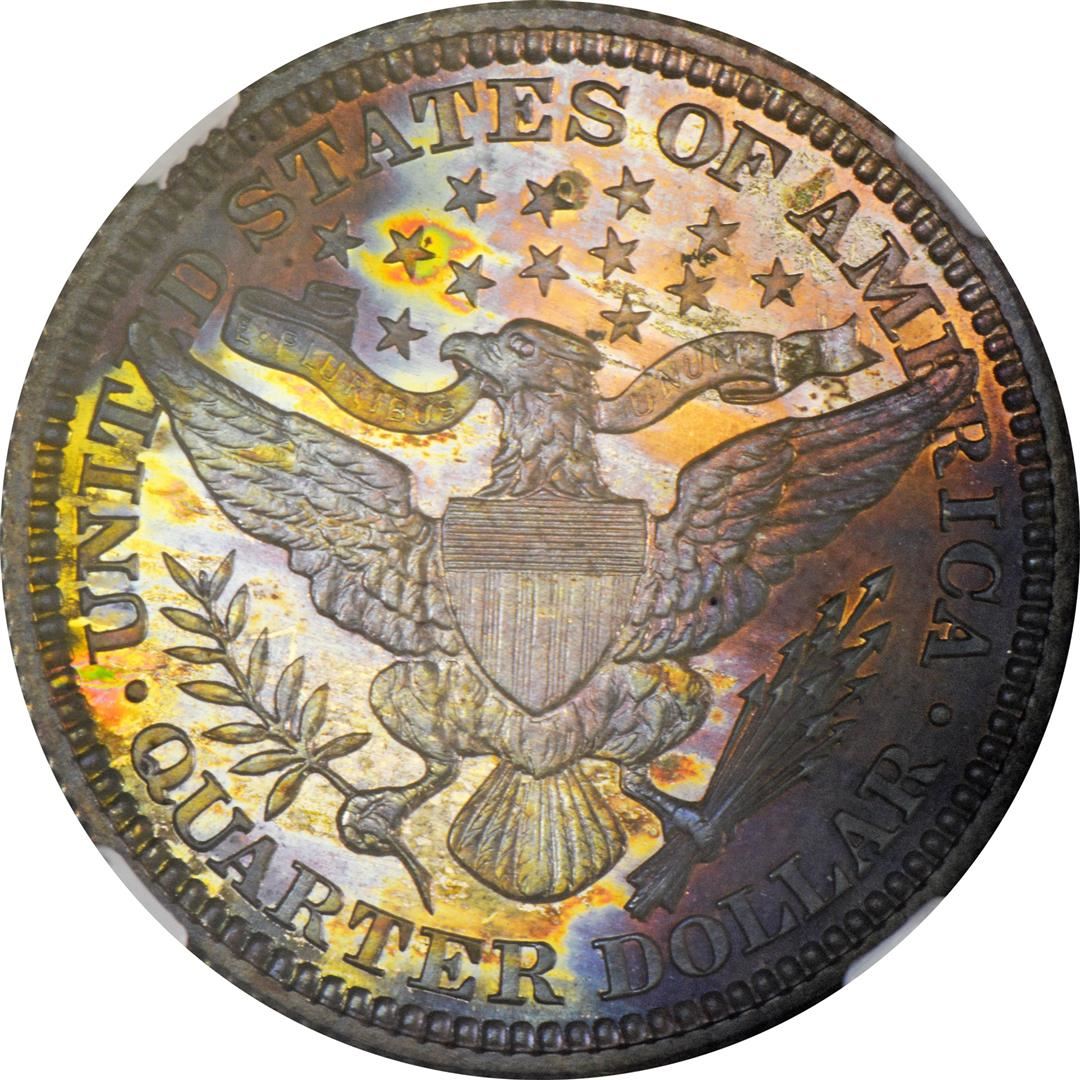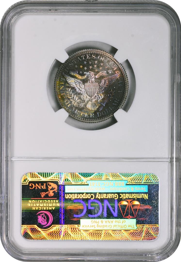 One 1909 Proof Barber Quarter Coin NGC PF68 Amazing Toning. NGC Certified.