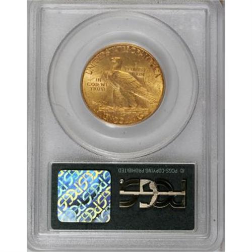 <B>1909-S $10 MS62 PCGS.</B></I> The satiny orange-yellow surfaces are largely free of marks, as are the well struck obverse devices. If not for a scrape on the eagle's wing, this coin might have received a higher grade. Nonetheless, this S-mint ten displays beautifully.<BR><BR><B>Coin Engraver:</B> Augustus Saint-Gaudens<BR><BR><b>Shipping:</b> Coins & Currency (<a target="_blank" href="http://www.heritageauctions.com/common/shipping.php">view shipping information</a>)