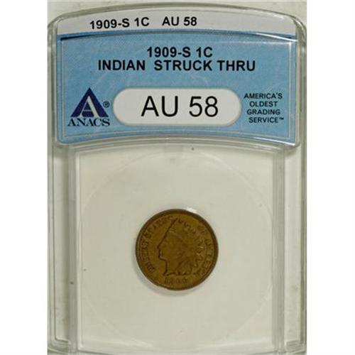 <B>1909-S 1C Indian Cent--Struck Thru--AU58 ANACS.</B></I><BR><BR><b>Shipping:</b> Coins & Currency (<a target="_blank" href="http://www.heritageauctions.com/common/shipping.php">view shipping information</a>)