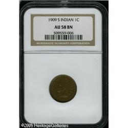 <B>1909-S 1C AU58 NGC.</B></I> This key date has glossy light to medium brown surfaces that display a few light marks on the Indian's cheek. The design elements are well defined. Lot:5261