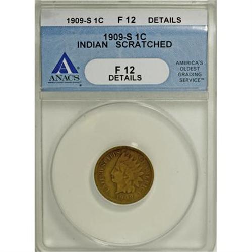 <B>1909-S 1C --Scratched--ANACS. Fine 12 Details.</B></I> NGC Census: (57/747). PCGS Population (109/1273). Mintage: 309,000. Numismedia Wsl. Price for NGC/PCGS coin in F12: $421. (#2238)<BR><BR><B>Coin Engraver:</B> James B. Longacre<BR><BR><b>Shipping:</b> Coins & Currency (<a target="_blank" href="http://www.heritageauctions.com/common/shipping.php">view shipping information</a>)