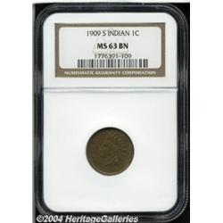 <B>1909-S<1C> MS63 Brown NGC.</B></I> Boldly struck, save for typical weakness on the feathertips of the headdress, with satin-like luster and rich mahogany-brown color. There are a few small contact marks visible on the reverse, and a single noticeable abrasion on the cheek, but they are seemingly fewer-than-expected for a coin graded at MS63. <BR><I>From The Sarasota Collection.</B></I> <BR><BR><B>Important notice:</B> Heritage usually auctions material at the rate of 200-250 lots per hour. On some occasions eBay Live bid software or the Internet may not be able to keep up with the pace of the auction. We recommend placing a realistic absentee bid now as insurance to avoid disappointment. Occasionally the auctioneer may eliminate or reject an eBay Live bid, and the auctioneer may also reopen a lot after the close of the eBay live bidding (usually because we missed an audience bid), and may reject your bid even if it shows you as the winning bidder. By bidding via eBay Live, you agree that Heritage may award the lot to another bidder at its sole discretion under the circumstances described above or any other reasonable circumstances. Since eBay bids are not shown to us until we open the lot on the floor, we treat those bids just like floor bids. In most cases the floor responds before the eBay bid is presented to us, due to Internet lag time, so for consistency we have made it a policy that floor bids are always considered first over tie eBay live bids. Also please note that all Heritage lots purchased through eBay Live carry a 20% Buyer's Premium. Please make sure you read the Terms and Conditions before you bid. </span></font></tr></table></td></tr></table>