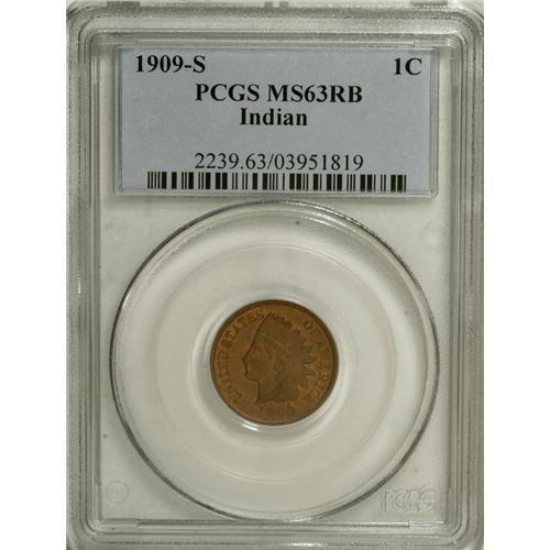 1909-S 1C MS63 Red and Brown PCGS. Intermingled golden