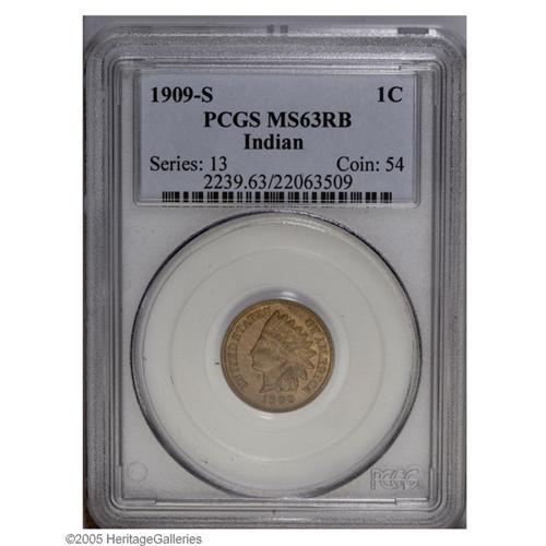 1909-S 1C MS63 Red and Brown PCGS. Softly struck on th 1909-S[1C] MS63 Red and Brown PCGS.