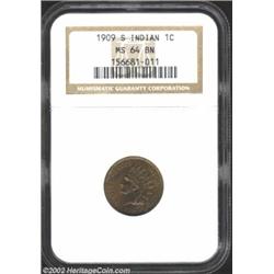 1909-S 1C MS64 Brown NGC. The medium brown surfaces display a glossy sheen that accents the nearly abrasion-free features. Typically struck and always popular as a low mintage, branch mint issue.From the Robert Tarr, Sr. Collection. Important notice: We expect to be auctioning lots at the rate of 200-250 per hour. Sometimes eBay Premier live bid software cannot keep up with that pace, so we strongly recommend that you place a realistic proxy bid now as insurance to avoid disappointment. Also please note that all Heritage/CAA lots purchased through eBay Premier carry a 20% Buyer's Premium. Please make sure you read the Terms and Conditions.