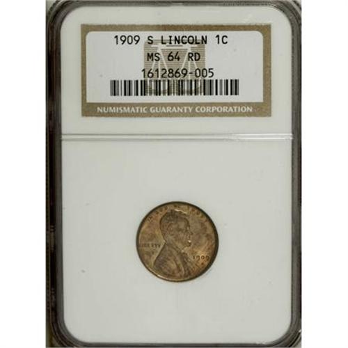 <B>1909-S 1C MS64 Red NGC.</B></I> NGC Census: (135/218). PCGS Population (410/512). Mintage: 1,825,000. Numismedia Wsl. Price for NGC/PCGS coin in MS64: $500. (#2434)<BR><BR><b>Shipping:</b> Coins & Currency (<a target="_blank" href="http://www.heritageauctions.com/common/shipping.php">view shipping information</a>)