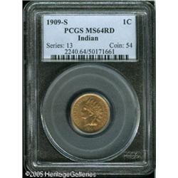 <B>1909-S 1C  MS64 Red PCGS.</B></I> A lovely, unabraded apricot-gold near-Gem, only kept from an even higher grade by a small number of trivial carbon flecks. The upper tips of the headdress are not fully struck, but the devices are generally sharp.    Lot:5264