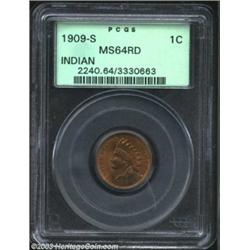1909-S 1C MS64 Red PCGS. A terrific looking near-Gem example of this final year key, with strong definition throughout and just a whisper of mellowing on the obverse. Important notice: We expect to be auctioning lots at the rate of 200-250 per hour. On occasion eBay live bid software cannot keep up with the pace of the auctions where 4-5 lots per minute can hammer down, so we recommend that you place a realistic absentee bid now as insurance to avoid disappointment. Also please note that all Heritage/CAA lots purchased through eBay Live carry a 20% Buyer's Premium. Please make sure you read the Terms and Conditions.