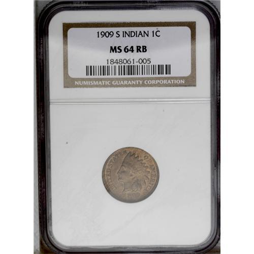 <B>1909-S<1C> MS64 Red and Brown NGC.</B></I> The final Indian cent and only the second copper coin struck in San Francisco. Fully lustrous with deep orange color fading to medium brown.<BR><I>From The Lewis (Tahoe) Collection.</B></I>