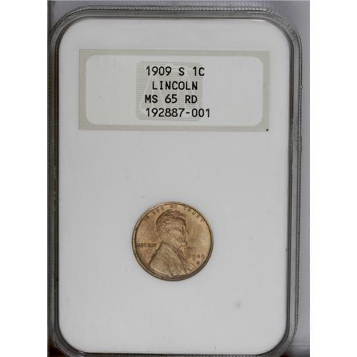 <B>1909-S<1C> MS65 Red NGC.</B></I> While the VDB reverse variety is foremost in the minds of collectors, this issue is respected in its own right. This Gem has charming peach-copper surfaces and excellent definition. Housed in an early holder.