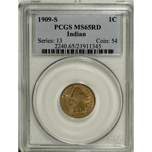 <B>1909-S 1C MS65 Red PCGS.</B></I> A lovely light gold Gem that displays scintillating luster and is well struck save for a couple of feather tips. A couple of flecks above the date are of minimal interest. The lowest mintage issue of the series. PCGS and NGC combined have certified only 17 pieces finer (2/07).<BR><BR><b>Shipping:</b> Coins & Currency (<a target="_blank" href="http://www.heritageauctions.com/common/shipping.php">view shipping information</a>)