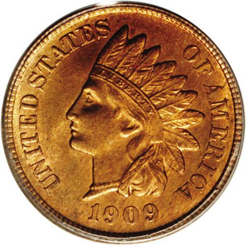 <B>1909-S<1C> MS65 Red PCGS.</B></I> A well frosted golden-orange Gem with above-average sharpness for this final-year key. Some minor weakness shows on the feathers, but this is entirely normal for the issue. Close examination reveals an unobtrusive planchet flake on and below the E in CENT. Housed in an earlier PCGS holder with a green insert.