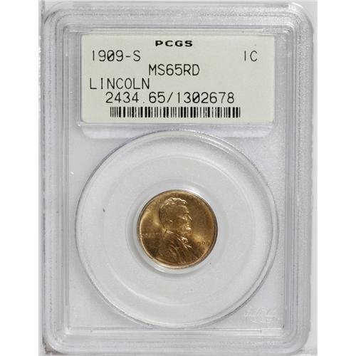 <B>1909-S<1C> MS65 Red PCGS.</B></I> Imposing cartwheel luster and nearly flawless orange-gold surfaces are the hallmarks of this needle-sharp Gem. A few microscopic carbon flecks are seen on the reverse.