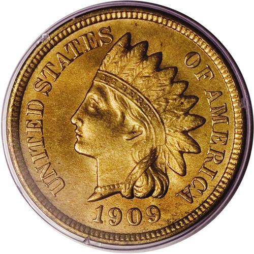 <B>1909-S<1C> MS65 Red PCGS.</B></I> Lowest mintage in the Indian cent series, and a key coin as such. Only 309,000 pieces were struck and full red examples such as this are always in demand. The surfaces show even orange-red color with a few darker specks (get out your magnifier) on the lower portion of the obverse. A bit weakly defined on the tips of the feathers on the headdress; otherwise, a sharply detailed coin with superior mint luster. Population: 125 in 65, 12 finer (8/06).
