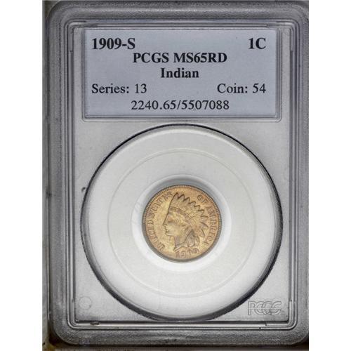 <B>1909-S<1C> MS65 Red PCGS.</B></I> Well struck except for the tips of the first few feathers, with splendid sunset-orange coloration and remarkably smooth, lustrous surfaces. A tiny stain at 4 o'clock on the reverse border should quickly identify this wonderfully preserved transitional year S-mint. <BR><BR><B>Important notice:</B> Heritage usually auctions material at the rate of 200-250 lots per hour. On some occasions eBay Live bid software or the Internet may not be able to keep up with the pace of the auction. We recommend placing a realistic absentee bid now as insurance to avoid disappointment. Occasionally the auctioneer may eliminate or reject an eBay Live bid, and the auctioneer may also reopen a lot after the close of the eBay live bidding (usually because we missed an audience bid), and may reject your bid even if it shows you as the winning bidder. By bidding via eBay Live, you agree that Heritage may award the lot to another bidder at its sole discretion under the circumstances described above or any other reasonable circumstances. Since eBay bids are not shown to us until we open the lot on the floor, we treat those bids just like floor bids. In most cases the floor responds before the eBay bid is presented to us, due to Internet lag time, so for consistency we have made it a policy that floor bids are always considered first over tie eBay live bids. Also please note that all Heritage lots purchased through eBay Live carry a 20% Buyer's Premium. Please make sure you read the Terms and Conditions before you bid. This lot is being auctioned in conjunction with a live floor auction by Heritage Galleries & Auctioneers. All final auction and invoice information will be supplied by Heritage Galleries & Auctioneers, and all other information should be considered preliminary. Lot:431 <BR><BR><B>Winning Notification and Billing:</B> After the FINAL session in this auction is complete, Heritage will send e-mail and snail mail invoices. This process normally takes several days. All final auction and invoice information will be supplied by Heritage Galleries & Auctioneers, and all other information should be considered preliminary. <BR><BR>This auction will be conducted on a live auction floor and over the Internet through eBay Live. If you choose to place an absentee bid, please take a moment to <font color='#0000ff'><u><a href='http://pages.ebay.com/liveauctions/help/before/laabsentee.html'>learn how eBay Live absentee bidding works</a></u></font><font color='#000000'>