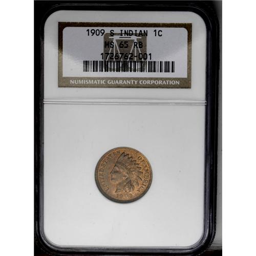 <B>1909-S<1C> MS65 Red and Brown NGC.</B></I> A beautiful Gem example of this important key date Indian cent. Radiantly lustrous with a slight woodgrain effect noted on both sides, along with lovely bronze-gold and reddish-gold coloration. Well preserved and virtually blemish-free. Census: 99 in 65, 8 finer (6/06).