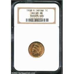 1909-S 1C MS65 Red and Brown NGC. Dominated by bright yellow-tan color, with hints of russet patina on the lower obverse. A lustrous Gem that has a good strike and a tiny planchet flaw (as struck) on the reverse border at 9 o'clock. Important notice: We expect to be auctioning lots at the rate of 200-250 per hour. On occasion eBay live bid software cannot keep up with the pace of the auctions where 4-5 lots per minute can hammer down, so we recommend that you place a realistic absentee bid now as insurance to avoid disappointment. Also please note that all Heritage/CAA lots purchased through eBay Live carry a 20% Buyer's Premium. Please make sure you read the Terms and Conditions.