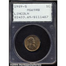 <B>1909-S<1C> MS65 Red and Brown PCGS.</B></I> A lustrous Gem with the typical woodgrain toning pattern common to nearly all 1909-S Indian <I>and</B></I> Lincoln cents. <BR><BR><B>Important notice:</B> Heritage usually auctions material at the rate of 200-250 lots per hour. On some occasions eBay Live bid software or the Internet may not be able to keep up with the pace of the auction. We recommend placing a realistic absentee bid now as insurance to avoid disappointment. Occasionally the auctioneer may eliminate or reject an eBay Live bid, and the auctioneer may also reopen a lot after the close of the eBay live bidding (usually because we missed an audience bid), and may reject your bid even if it shows you as the winning bidder. By bidding via eBay Live, you agree that Heritage may award the lot to another bidder at its sole discretion under the circumstances described above or any other reasonable circumstances. Since eBay bids are not shown to us until we open the lot on the floor, we treat those bids just like floor bids. In most cases the floor responds before the eBay bid is presented to us, due to Internet lag time, so for consistency we have made it a policy that floor bids are always considered first over tie eBay live bids. Also please note that all Heritage lots purchased through eBay Live carry a 20% Buyer's Premium. Please make sure you read the Terms and Conditions before you bid. </span></font></tr></table></td></tr></table>