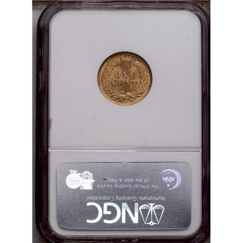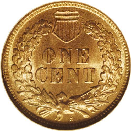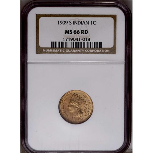 <B>1909-S<1C> MS66 Red NGC.</B></I> The undeniably full mint luster presents more of a copper-golden than a reddish appearance, but it is attractive and desirable, nonetheless. The strike is a trifle soft over a few of the tips of the feathers in the headdress, but the eye appeal remains strong due to the presence of minimal muting of color for an early S-mint cent. There are also no individually mentionable post-production blemishes or spots. Produced in limited numbers (309,000 pieces), the final-year 1909-S is one of the undisputed keys to the business strike cent series of this type. Census: 5 in 66, none are finer (4/06).