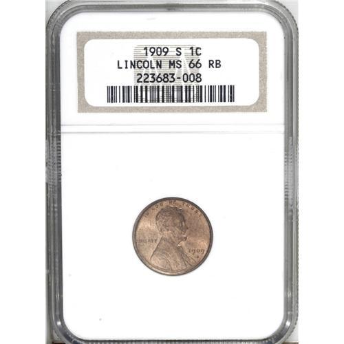 <B>1909-S<1C> MS66 Red and Brown NGC.</B></I> Sharply struck and basically full red with a few light spots. If not for a few turned spots that are light tan, this could have been Red. Census: 17 in 66 Red and Brown, 0 finer (8/06).<BR><I>From The Tigard Oregon Small Cent Collection.</B></I>
