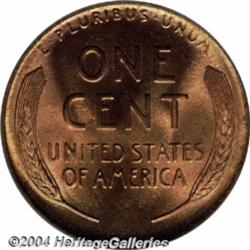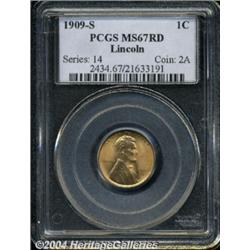 <B>1909-S<1C> MS67 Red PCGS.</B></I> This semi-key date has a brassy-orange color, that is highlighted by a narrow fringe of yellow-gold around the rim areas, slightly more noticeable on the reverse. The design features are well impressed, with nice detail apparent on Lincoln's portrait and the wheat stalks. Lustrous surfaces are essentially free of any notable abrasions or carbon spots. Population: 3 in 67, 0 finer (7/04). <BR><BR><B>Important notice:</B> Heritage usually auctions material at the rate of 200-250 lots per hour. On some occasions eBay Live bid software or the Internet may not be able to keep up with the pace of the auction. We recommend placing a realistic absentee bid now as insurance to avoid disappointment. Occasionally the auctioneer may eliminate or reject an eBay Live bid, and the auctioneer may also reopen a lot after the close of the eBay live bidding (usually because we missed an audience bid), and may reject your bid even if it shows you as the winning bidder. By bidding via eBay Live, you agree that Heritage may award the lot to another bidder at its sole discretion under the circumstances described above or any other reasonable circumstances. Since eBay bids are not shown to us until we open the lot on the floor, we treat those bids just like floor bids. In most cases the floor responds before the eBay bid is presented to us, due to Internet lag time, so for consistency we have made it a policy that floor bids are always considered first over tie eBay live bids. Also please note that all Heritage lots purchased through eBay Live carry a 20% Buyer's Premium. Please make sure you read the Terms and Conditions before you bid. </span></font></tr></table></td></tr></table>