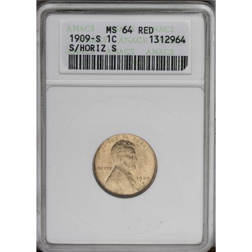 1909-S 1C S Over Horizontal S MS64 Red ANACS. FS-012.3 1909-S[1C] S Over Horizontal S MS64 Red ANACS