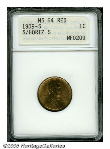 <B>1909-S<1C> S Over Horizontal S MS64 Red ANACS.</B></I> FS-012.3. A lustrous brick-red near-Gem of this important low mintage issue. A few tiny toning flecks are of no significance. In an old ANA cache holder.