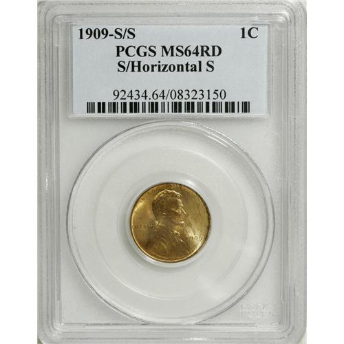 <B>1909-S 1C S Over Horizontal S MS64 Red PCGS.</B></I> FS-012.3. A dramatic variety that costs only slightly more than its normal counterpart. Choice with above-average detail and areas of ruby-violet and carbon on the reverse of this otherwise copper-orange piece. Listed on page 114 of the 2007 <I>Guide Book.</B></I><BR><BR><b>Shipping:</b> Coins & Currency (<a target="_blank" href="http://www.heritageauctions.com/common/shipping.php">view shipping information</a>)