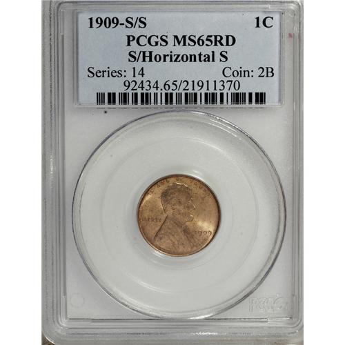 <B>1909-S 1C S Over Horizontal S MS65 Red PCGS.</B></I> FS-012.3. The undermintmark feature is clearly evident with the aid of slight magnification. This golden-tan Gem is sharply struck with shimmering luster and a faint degree of streaky reddish patina on the reverse. A couple of tiny marks on the upper reverse do not distract.<BR><BR><b>Shipping:</b> Coins & Currency (<a target="_blank" href="http://www.heritageauctions.com/common/shipping.php">view shipping information</a>)