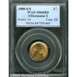 <B>1909-S 1C S Over Horizontal S MS65 Red PCGS.</B></I> FS-012.3. Full unmellowed mint luster, with a sharp strike and virtually pristine surfaces. An interesting and popular variety that remains elusive in Gem and finer conditions. Population: 106 in 65, 31 finer (2/05).