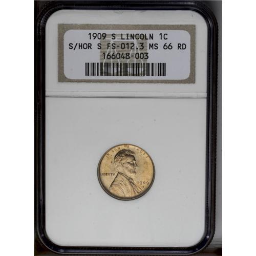 <B>1909-S<1C> S Over Horizontal S MS66 Red NGC.</B></I> FS-012.3. Booming luster and bright honey-gold iridescence confirm the quality of this needle-sharp and unmarked example. Distributed reverse tan flecks preclude perfection.<BR><I>From The Key Date Coin Collection.</B></I>