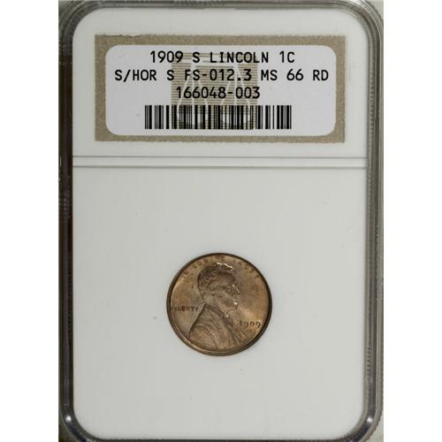 <B>1909-S 1C S Over Horizontal S MS66 Red NGC.</B></I> FS-012.3. Booming luster and bright honey-gold iridescence confirm the quality of this needle-sharp and unmarked example. Distributed reverse tan flecks preclude perfection.<BR><BR><b>Shipping:</b> Coin/Currency (<a target="_blank" href="http://www.heritageauctions.com/common/shipping.php">view shipping information</a>)