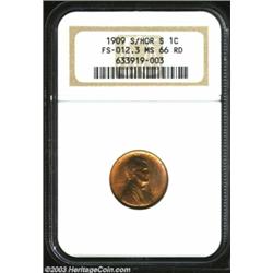 1909-S 1C S Over Horizontal S MS66 Red NGC. Splendid orange accents give this impeccably preserved first year variety solid visual appeal to go along with its technical merits. Important notice: We expect to be auctioning lots at the rate of 200-250 per hour. On occasion eBay live bid software cannot keep up with the pace of the auctions where 4-5 lots per minute can hammer down, so we recommend that you place a realistic absentee bid now as insurance to avoid disappointment. Also please note that all Heritage/CAA lots purchased through eBay Live carry a 20% Buyer's Premium. Please make sure you read the Terms and Conditions.