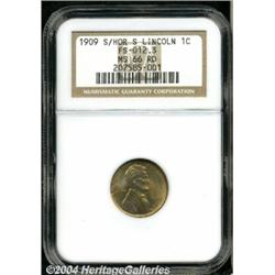 <B>1909-S<1C> S Over Horizontal S MS66 Red NGC.</B></I> Bright orange, gold, and lime-green color. A highly lustrous Gem that has well preserved surfaces. The obverse has a few miniscule carbon flecks. <BR><BR><B>Important notice:</B> Heritage usually auctions material at the rate of 200-250 lots per hour. On some occasions eBay Live bid software or the Internet may not be able to keep up with the pace of the auction. We recommend placing a realistic absentee bid now as insurance to avoid disappointment. Occasionally the auctioneer may eliminate or reject an eBay Live bid, and the auctioneer may also reopen a lot after the close of the eBay live bidding (usually because we missed an audience bid), and may reject your bid even if it shows you as the winning bidder. By bidding via eBay Live, you agree that Heritage may award the lot to another bidder at its sole discretion under the circumstances described above or any other reasonable circumstances. Since eBay bids are not shown to us until we open the lot on the floor, we treat those bids just like floor bids. In most cases the floor responds before the eBay bid is presented to us, due to Internet lag time, so for consistency we have made it a policy that floor bids are always considered first over tie eBay live bids. Also please note that all Heritage lots purchased through eBay Live carry a 20% Buyer's Premium. Please make sure you read the Terms and Conditions before you bid. </span></font></tr></table></td></tr></table>