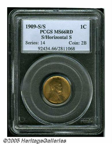 <B>1909-S<1C> S Over Horizontal S MS66 Red PCGS.</B></I> FS-012.3. Light orange and olive-gold in color, this lustrous and intricately struck first year Lincoln Cent is virtually unabraded and has only a few nearly microscopic carbon flecks. Solidly graded as a premium-quality Gem, and unobtainable any finer at PCGS. Population: 32 in 66, 0 finer (6/05).<BR><I>From The William Bickel Collection, Part One.</B></I>