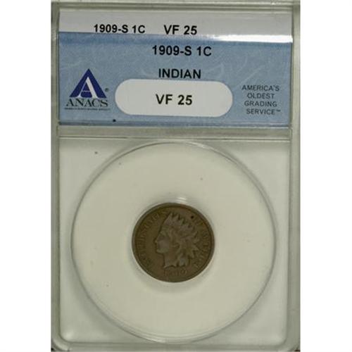 <B>1909-S 1C VF25 ANACS.</B></I> NGC Census: (48/606). PCGS Population (141/933). Mintage: 309,000. Numismedia Wsl. Price for NGC/PCGS coin in VF25: $493. (#2238)<BR><BR><B>Coin Engraver:</B> James B. Longacre<BR><BR><b>Shipping:</b> Coins & Currency (<a target="_blank" href="http://www.heritageauctions.com/common/shipping.php">view shipping information</a>)