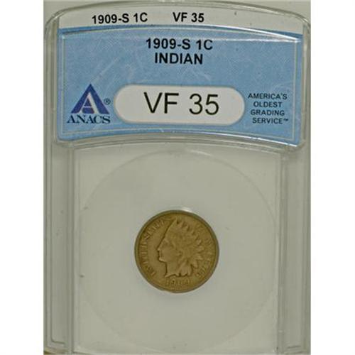 <B>1909-S 1C VF35 ANACS.</B></I> NGC Census: (46/467). PCGS Population (141/617). Mintage: 309,000. Numismedia Wsl. Price for NGC/PCGS coin in VF35: $477. (#2238)<BR><BR><B>Coin Engraver:</B> James B. Longacre<BR><BR><b>Shipping:</b> Coins & Currency (<a target="_blank" href="http://www.heritageauctions.com/common/shipping.php">view shipping information</a>)