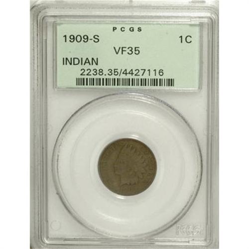 <B>1909-S 1C VF35 PCGS.</B></I> PCGS Population (141/617). NGC Census: (46/467). Mintage: 309,000. Numismedia Wsl. Price for NGC/PCGS coin in VF35: $477. (#2238)<BR><BR><B>Coin Engraver:</B> James B. Longacre<BR><BR><b>Shipping:</b> Coins & Currency (<a target="_blank" href="http://www.heritageauctions.com/common/shipping.php">view shipping information</a>)