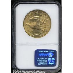 <B>1909-S<$20> MS62 NGC.</B></I> Nicely struck, with light copper-gold patination. Several light abrasions are scattered about, especially on the eagle's left wing.<BR><I>From The Dennis Gundy Collection.</B></I> <BR><BR><B>Important notice:</B> Heritage usually auctions material at the rate of 200-250 lots per hour. On some occasions eBay Live bid software or the Internet may not be able to keep up with the pace of the auction. We recommend placing a realistic absentee bid now as insurance to avoid disappointment. Occasionally the auctioneer may eliminate or reject an eBay Live bid, and the auctioneer may also reopen a lot after the close of the eBay live bidding (usually because we missed an audience bid), and may reject your bid even if it shows you as the winning bidder. By bidding via eBay Live, you agree that Heritage may award the lot to another bidder at its sole discretion under the circumstances described above or any other reasonable circumstances. Since eBay bids are not shown to us until we open the lot on the floor, we treat those bids just like floor bids. In most cases the floor responds before the eBay bid is presented to us, due to Internet lag time, so for consistency we have made it a policy that floor bids are always considered first over tie eBay live bids. Also please note that all Heritage lots purchased through eBay Live carry a 20% Buyer's Premium. Please make sure you read the Terms and Conditions before you bid. </span></font></tr></table></td></tr></table>