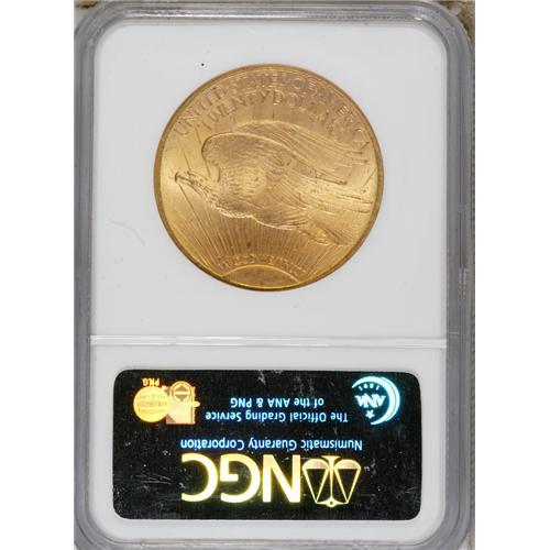 1909-S $20 MS64 NGC. Wheat-gold surfaces exude soft lu