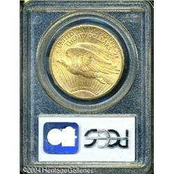 1909-S $20 MS64 PCGS. Blazing luster and clean fie <B>1909-S $20 MS64 PCGS.</B></I> Blazing luster and clean fields attest to the quality of this straw-gold near-Gem. The strike is intricate on Liberty's face and hands. <BR><BR><B>Important notice:</B> Heritage usually auctions material at the rate of 200-250 lots per hour. On some occasions eBay Live bid software or the Internet may not be able to keep up with the pace of the auction. We recommend placing a realistic absentee bid now as insurance to avoid disappointment. Occasionally the auctioneer may eliminate or reject an eBay Live bid, and the auctioneer may also reopen a lot after the close of the eBay live bidding (usually because we missed an audience bid), and may reject your bid even if it shows you as the winning bidder. By bidding via eBay Live, you agree that Heritage may award the lot to another bidder at its sole discretion under the circumstances described above or any other reasonable circumstances. Since eBay bids are not shown to us until we open the lot on the floor, we treat those bids just like floor bids. In most cases the floor responds before the eBay bid is presented to us, due to Internet lag time, so for consistency we have made it a policy that floor bids are always considered first over tie eBay live bids. Also please note that all Heritage lots purchased through eBay Live carry a 20% Buyer's Premium. Please make sure you read the Terms and Conditions before you bid. This lot is being auctioned in conjunction with a live floor auction by Heritage Galleries & Auctioneers. All final auction and invoice information will be supplied by Heritage Galleries & Auctioneers, and all other information should be considered preliminary. Lot:7097