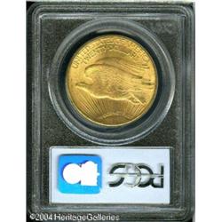 1909-S $20 MS64 PCGS. Booming luster and blushes o <B>1909-S $20 MS64 PCGS.</B></I> Booming luster and blushes of orange-gold color characterize this sharply struck and refreshingly unmarked near-Gem. <BR><BR><B>Important notice:</B> Heritage usually auctions material at the rate of 200-250 lots per hour. On some occasions eBay Live bid software or the Internet may not be able to keep up with the pace of the auction. We recommend placing a realistic absentee bid now as insurance to avoid disappointment. Occasionally the auctioneer may eliminate or reject an eBay Live bid, and the auctioneer may also reopen a lot after the close of the eBay live bidding (usually because we missed an audience bid), and may reject your bid even if it shows you as the winning bidder. By bidding via eBay Live, you agree that Heritage may award the lot to another bidder at its sole discretion under the circumstances described above or any other reasonable circumstances. Since eBay bids are not shown to us until we open the lot on the floor, we treat those bids just like floor bids. In most cases the floor responds before the eBay bid is presented to us, due to Internet lag time, so for consistency we have made it a policy that floor bids are always considered first over tie eBay live bids. Also please note that all Heritage lots purchased through eBay Live carry a 20% Buyer's Premium. Please make sure you read the Terms and Conditions before you bid. This lot is being auctioned in conjunction with a live floor auction by Heritage Galleries & Auctioneers. All final auction and invoice information will be supplied by Heritage Galleries & Auctioneers, and all other information should be considered preliminary. Lot:7098