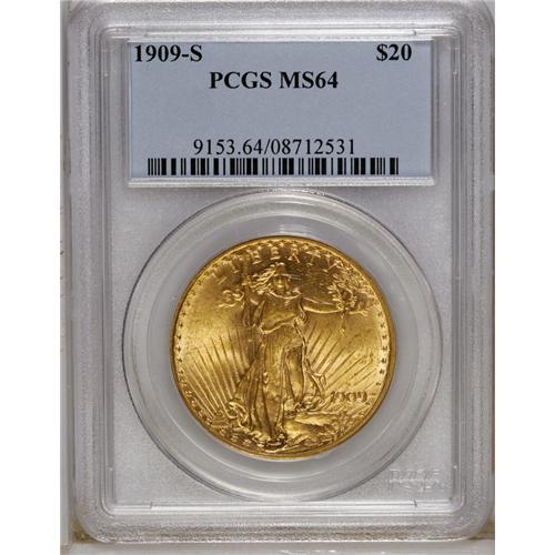 1909-S $20 MS64 PCGS. Sharply struck. In fact, so shar