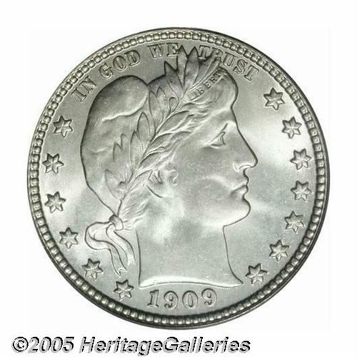 <B>1909-S<25C> MS66 PCGS.</B></I> Here we go again, taking an obviously elusive coin and giving the collector a choice of several high grade examples. This luxuriant, satiny-white representative is well defined and looks much as it did when it came off the San Francisco Mint dies nearly a century ago.