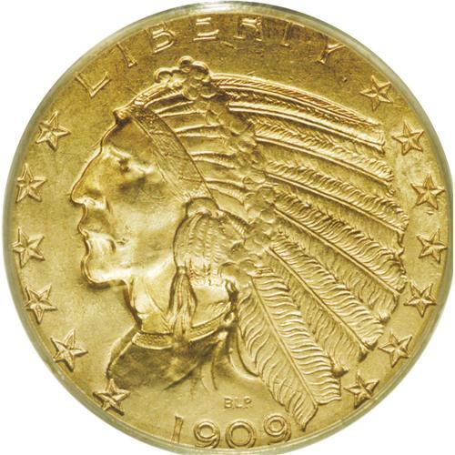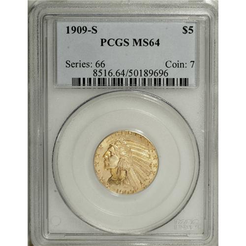 1909-S $5 MS64 PCGS. Compared to the key-date 1909-O,